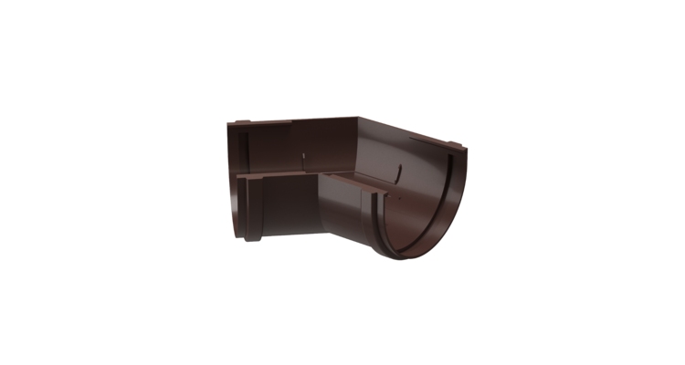 Угол для соединения желобов окрашен в цвет «Шоколад» и служит для соединения двух желобов серии «Premium» такого же цвета под внутренним или внешним углом 135 градусов.