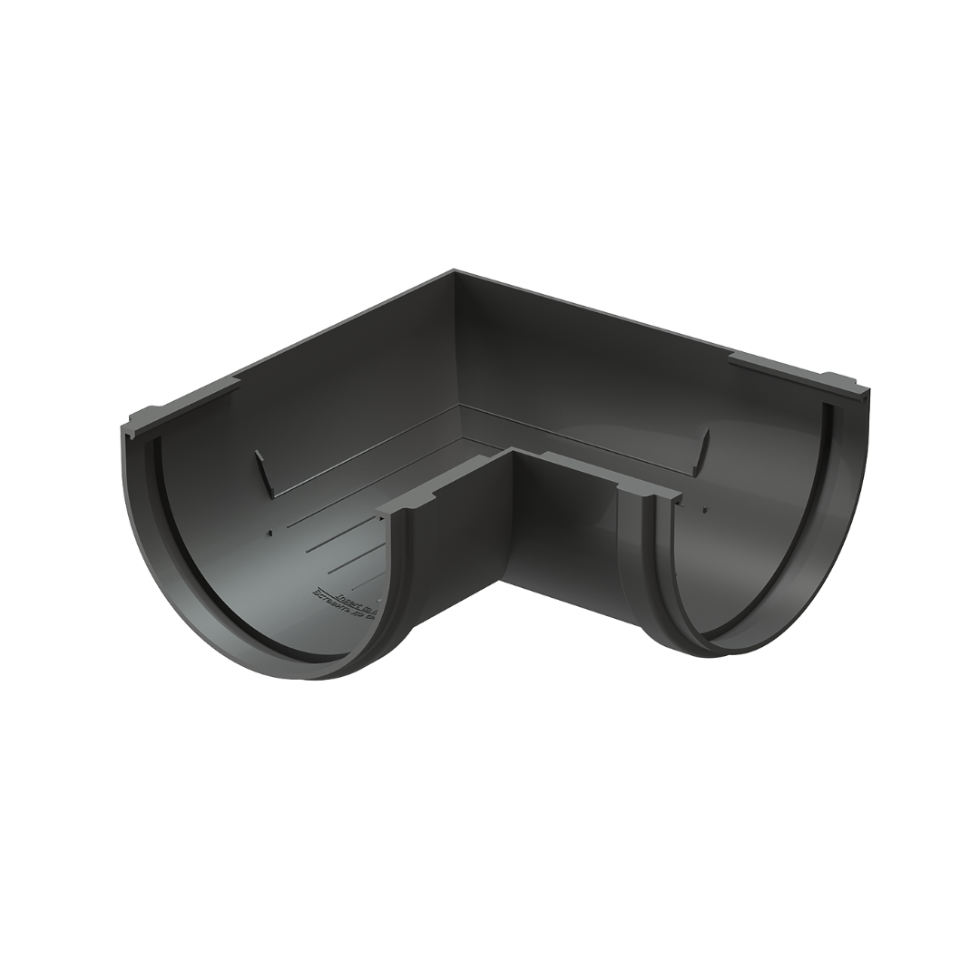Универсальный угол желоба необходим, чтобы соединять два желоба под прямым углом 90˚ на внутренних или внешних углах строения.