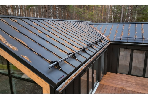Когда на кровле присутствуют ендовы и требуется возможность выбора направления монтажа картин на скатах рекомендуем выбирать Кликфальц® Dоublе Pro