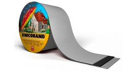 Герметизирующая лента Никобaнд (NICOBAND) получают путем одностороннего нанесения на фольгированною УФ — стойкую пленку самоклеящегося битумно-полимерного вяжущего, состоящего из битума, полимерного модификатора и специальных адгезионных добавок.