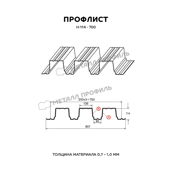Профлист МЕТАЛЛ ПРОФИЛЬ Н-114x750-A (ПЭ-01-9003-1) часто используется в Нижнем Новгороде для монтажа профилированного листа. Представляет собой лист оцинкованной стали с покрытием. Толщина стальной основы с оцинковкой и декоративно-защитным покрытием составляет 1 мм.Проходя процедуру холодного проката, сталь принимает волнообразный вид. Такая форма придает профилю несущую способность.