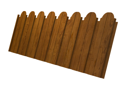 Декоративная вырубка по верхнему краю листа позволяет возвести надежное, экономичное и при этом привлекательное ограждение.