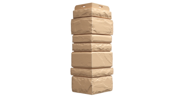 Угловой элемент изготавливается из полипропилена и устанавливается после окончания монтажа рядовых панелей. Помимо чисто декоративного применения, плотно и герметично закрывает находящиеся под ним материалы и защищает их от негативного воздействия окружающей среды. Необходимая прочность обеспечивается за счет наличия усиленных ребер жесткости с внутренней стороны. Для монтажа требуется специальный аксессуар — стартовый угол, один на каждый внешний угол здания.