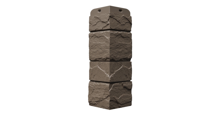 Углы крепятся на стыке стен, закрывая нефактурную часть панелей и, защищая углы фасада от воздействия внешней среды. Углы с имитацией сланца имеют 6 цветов на выбор, среди которых оттенок коричневого — «Куршевель».