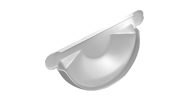 Заглушка торцевая устанавливается на торцах желоба. Конструкция обеспечивает постоянную фиксацию, герметичность и жесткость желоба. Может быть дополнительно зафиксирована герметиком или заклепками. Заглушка является универсальной — ее можно использовать как с правого, так и с левого края желоба.